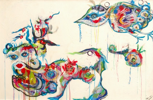 Haar werken zijn gemaakt in acryl, en af en toe in olieverf.